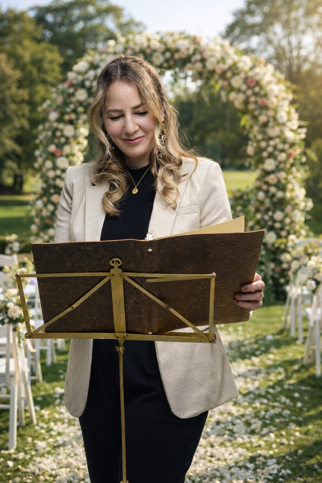 Aus dieser Leidenschaft heraus habe ich die Ausbildung zur freien Traurednerin im 2025 absolviert. So kann ich Paare nicht nur im offiziellen Rahmen begleiten, sondern auch persönliche, individuelle Zeremonien gestalten – immer mit Einfühlungsvermögen, Professionalität und Gespür für den richtigen Moment.